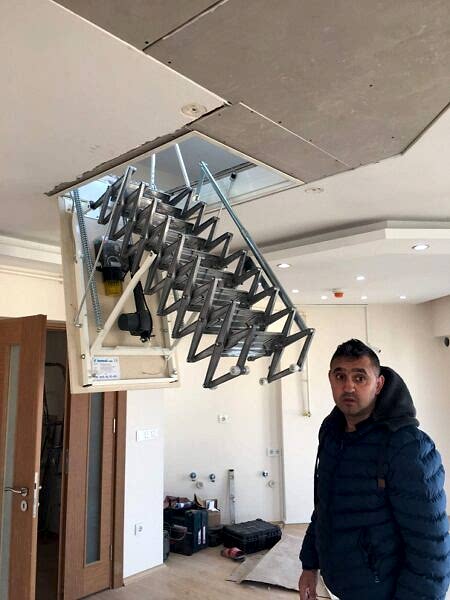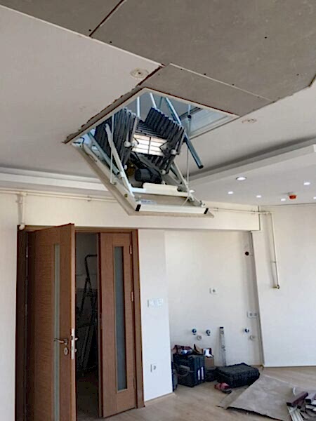 Kumandalı Elektrikli Motorlu Çatı Merdiveni Resimleri